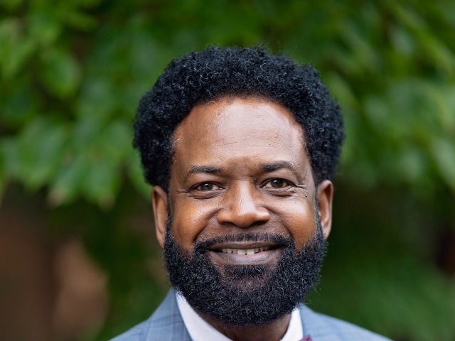 Dean Douglas Sweeney talks with Beeson professor and preacher Reginald Calvert.