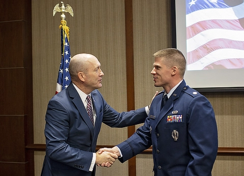 The Samford Challenge Coins were presented to all service members in attendance, and will continue to be distributed to Samford students, employees and alumni who serve or have served in the U.S. Military.