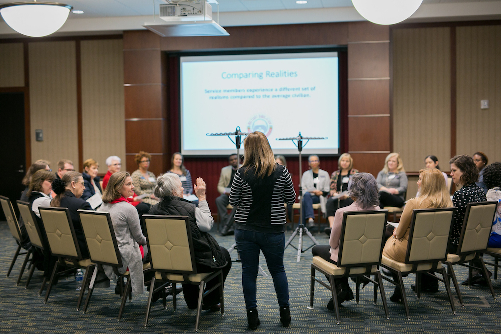 Participants had the opportunity to hear firsthand from a military student who shared her personal testimony of the difficulties she faced after returning home. In addition, participants read aloud common misconceptions surrounding the military return to home process.