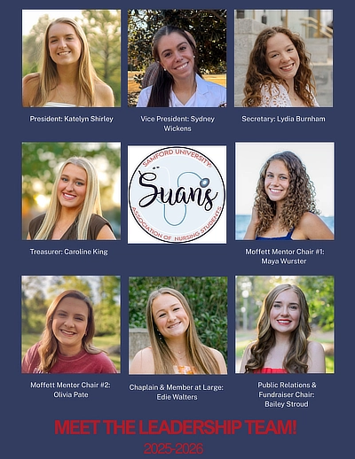 Samford University Association of Nursing Students (SUANS) is a constituent of the Alabama Association of Nursing Students (AANS) and the National Student Nurses Association (NSNA). SUANS exists to aid in the development of personal and professional growth by providing programs that are timely. By becoming more involved in the profession and sharing experiences with others, you will be able to broaden your outlook and professional experience.