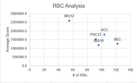 With the success of running backs from the University of Alabama, the SEC is going to be very difficult to overcome in terms of the best running back conference. Below are the results for the Power Five conferences.
