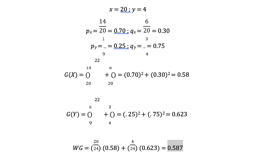 The detailed mathematical calculations and terminology are shown below. The table below shows the definitions of the terminology and variables used in the GINI calculations